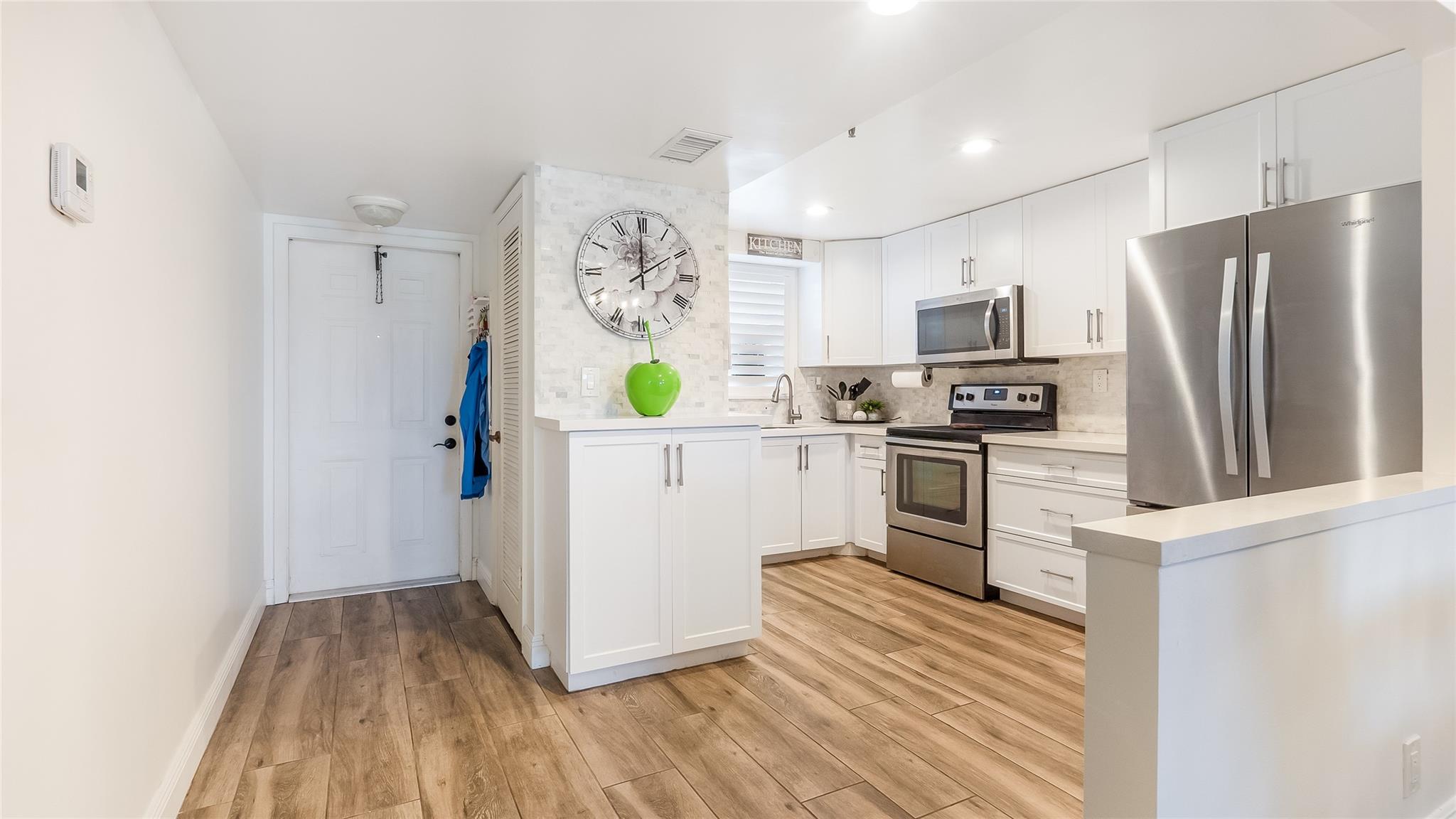 Description: This second-floor unit offers new shaker cabinets, a stunning backsplash, a...